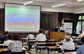 文教府にて、 みてやま学園大学院の2年生の皆さんが、テーマごとにグループで取り組んできた実践活動を発表し、大学院での学習内容を紹介するとともに、2年生のモットーである「一生勉強、一生青春」を披露する場として「みてやまフォーラム」が開催され、盛大な雰囲気の中、それぞれの発表が行われました。