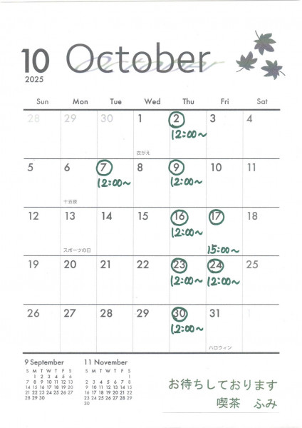 1. 「喫茶 ふみ」 8月の営業日🍦