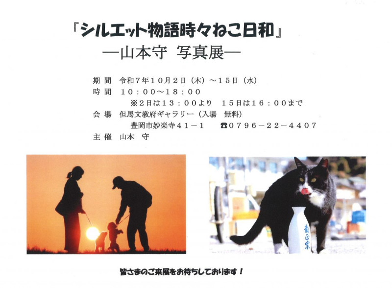 文教府ギャラリー「山本守写真展 シルエット物語時々ねこ日和」が10月2日(木)から開催されます